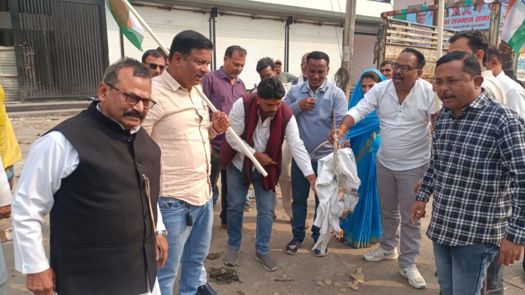 कांग्रेस ने मंत्रियों का पुतला दहन, किया पुलिस से नोकझोंक