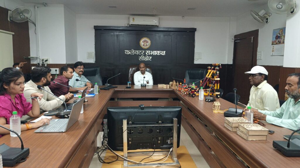 बैठक में जिला व्यापार एवं उद्योग केन्द्र के महाप्रबंधक श्री अनुराग वर्मा द्वारा निर्यात, विपणन, प्रबंधन एवं शासकीय योजनाओं के संबंध में विस्तार से जानकारी दी गई। बैठक में एमपीआईडीसी के निर्यात सेल के प्रतिनिधियों द्वारा निर्यात तथा मार्केटिंग प्रबंधन के संबंध में भी जानकारी प्रदान दी गई। बैठक में वस्तु एवं सेवा विभाग सीहोर के उपायुक्त, एमपीआईडीसी भोपाल के श्री प्रणय चौहान, सुश्री इशिका चौहान, श्री हरीश सीठा, श्री राजेन्द्र राजवैद्य, श्री विनोद शर्मा, विभिन्न शिल्पी तथा अविरल सनातन सेवा संस्थान के श्री प्रदीप मिश्रा सहित अन्य अधिकारी उपस्थित थे।