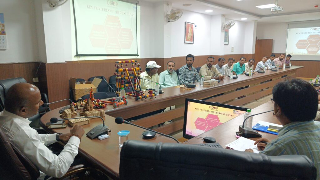 कलेक्टर श्री बालागुरू के. की अध्यक्षता में कलेक्ट्रेट सभाकक्ष में एक जिला एक उत्पाद (ओडीओपी) के तहत बैठक एवं एक दिवसीय एक्सलेरेटर कार्यशाला आयोजित की गई। बैठक में कलेक्टर श्री बालागुरू के. द्वारा विशिष्ट उत्पादों के विकास, बाजार की क्षमता को बढ़ाने तथा लकड़ी खिलौना निर्माण करने वाले शिल्पियों को प्रोत्साहित करने के लिए जिले में ओडीओपी एक्सलेरेटर कार्यशाला के संबंध में उपस्थित शिल्पियों तथा लकड़ी खिलौना शिल्पियों को कच्चा माल की उपलब्धता और उत्पाद के निर्यात के संबंध में विस्तार से जानकारी दी गई। इसके साथ ही सामूहिक रूप से लकड़ी के खिलौनों के निर्माण के लिए मार्गदर्शन भी दिया गया।