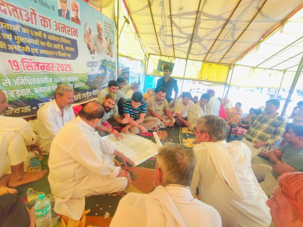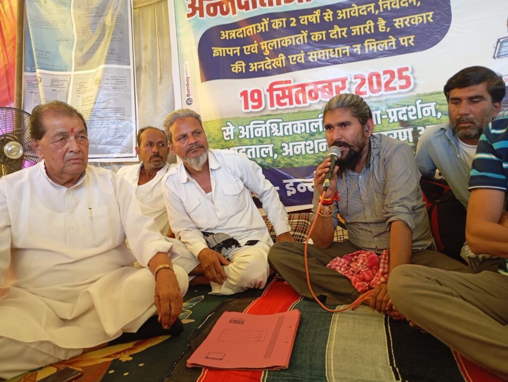 अंधी बहरी सरकार के कानों मे किसानों की नही पहुंची आवाज जनप्रतिनिधियों सहित प्रशासन ने भी नही ली सुध, जिम्मेदार अधिकारी पांचवे दिन भी नही पहुंचे अनशन स्थल……