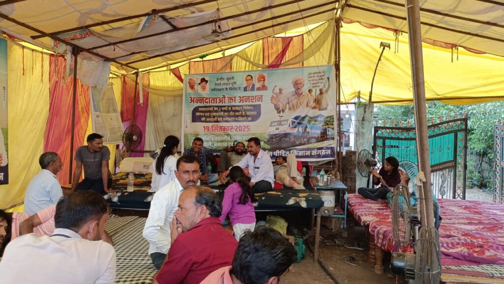 साथ ही किसानों की पीड़ा की प्रशासन ने भी नही ली सुध, जिम्मेदार अधिकारी नवें दिन भी नही पहुंचे अनशन स्थल।
